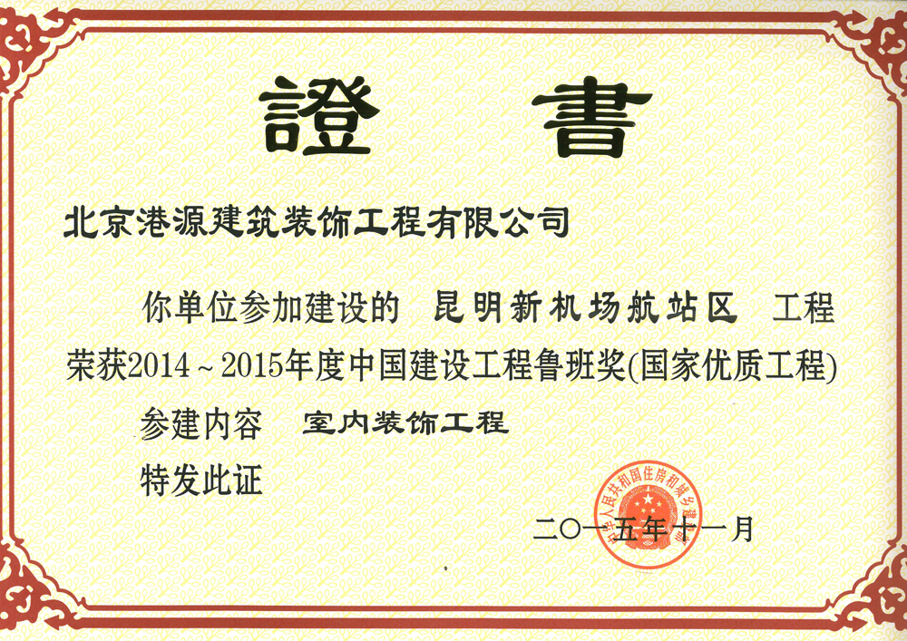 魯班獎——昆明新機場航站區