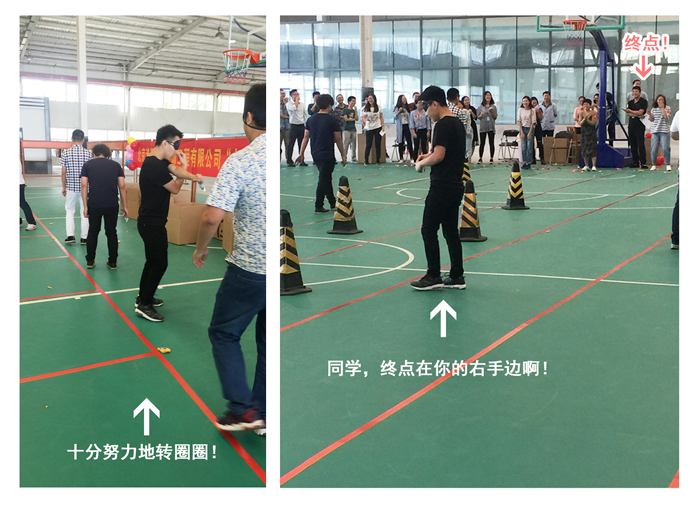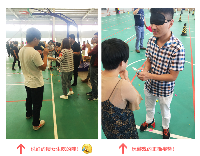 【游戲規則:男生在起點蒙上雙眼并拿上一根雪糕,原地轉五圈后繞過障礙物跑向終點,找到相應號碼的女生后喂她把雪糕吃完(注意:是喂女生吃,不是自己吃!),最終以吃完雪糕的順序判斷勝負!】