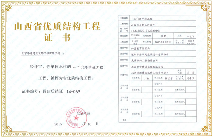 山西省優質結構工程